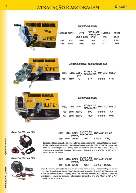 @kamellcomercio Guincho elétrico com cabo de aço, motor de imã permanente. Capacidade para puxar: