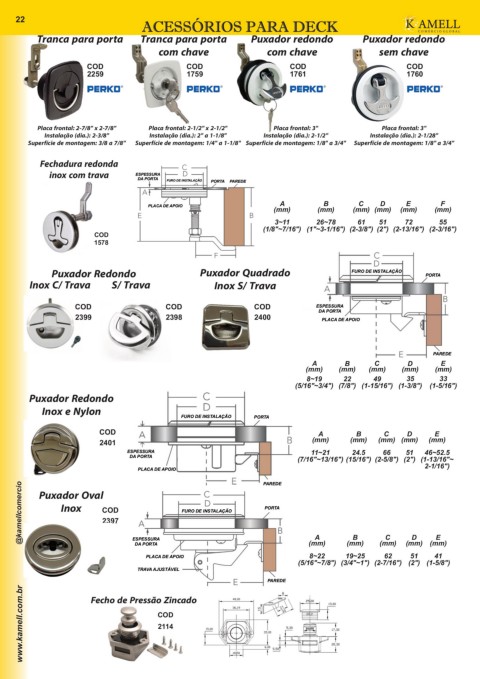 22 Tranca para porta Tranca para porta Puxador redondo Puxador redondo