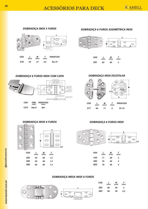 DOBRADIÇA FUROS INOX COM CAPA DOBRADIÇA INOX ESCOTILHA