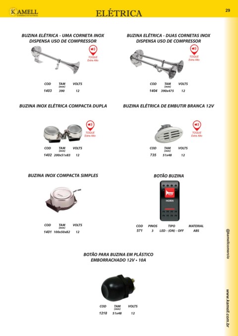 BUZINA ELÉTRICA UMA CORNETA INOX BUZINA ELÉTRICA DUAS CORNETAS INOX