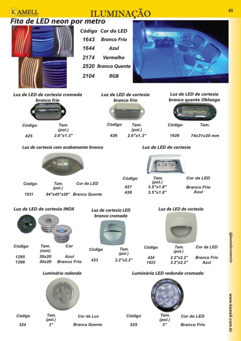 Código Tam. Cor da Luz Código Tam. Cor da LED www.kamell.com.br