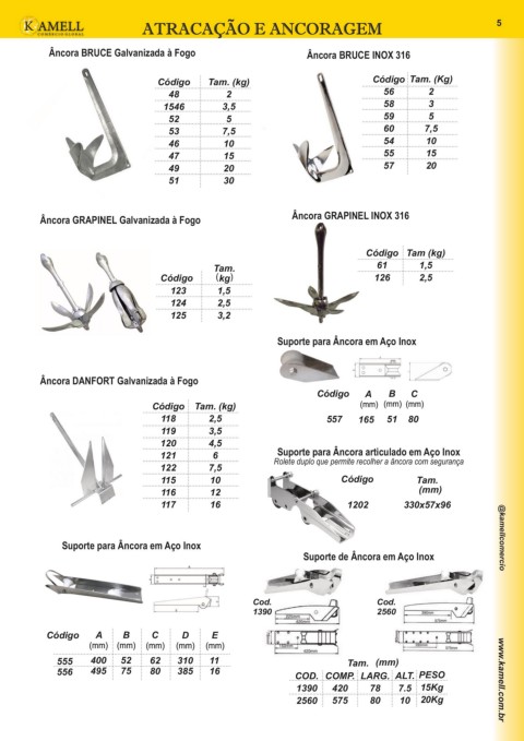 556 495 75 80 385 16 COD. COMP. LARG. ALT. PESO www.kamell.com.br