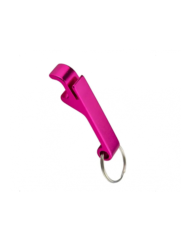Abridor de garrafa em metal na cor rosa