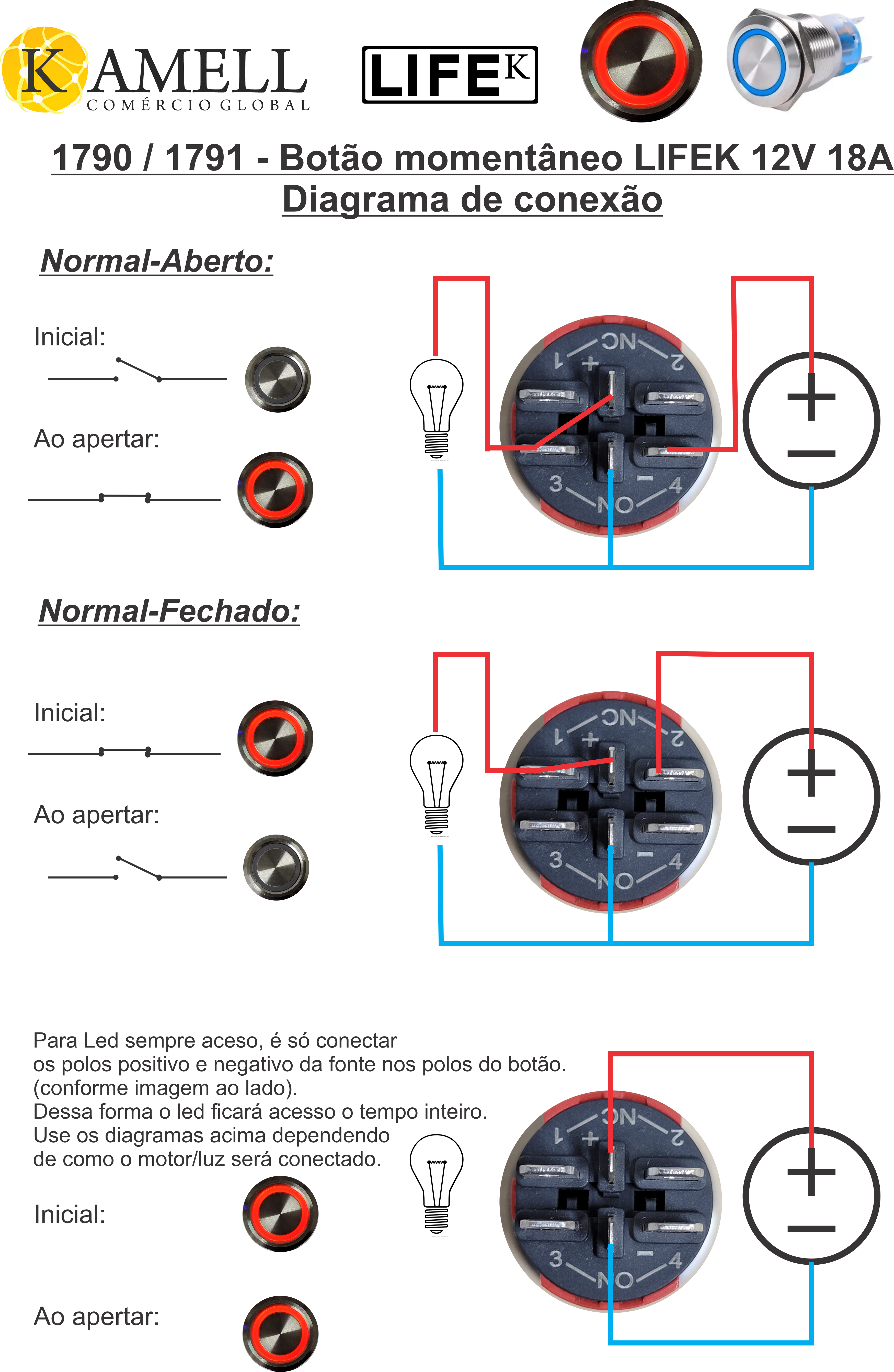 A Kamell, distribuidora de produtos náuticos, oferece aos seus clientes o Botão Interruptor Momentâneo Inox.