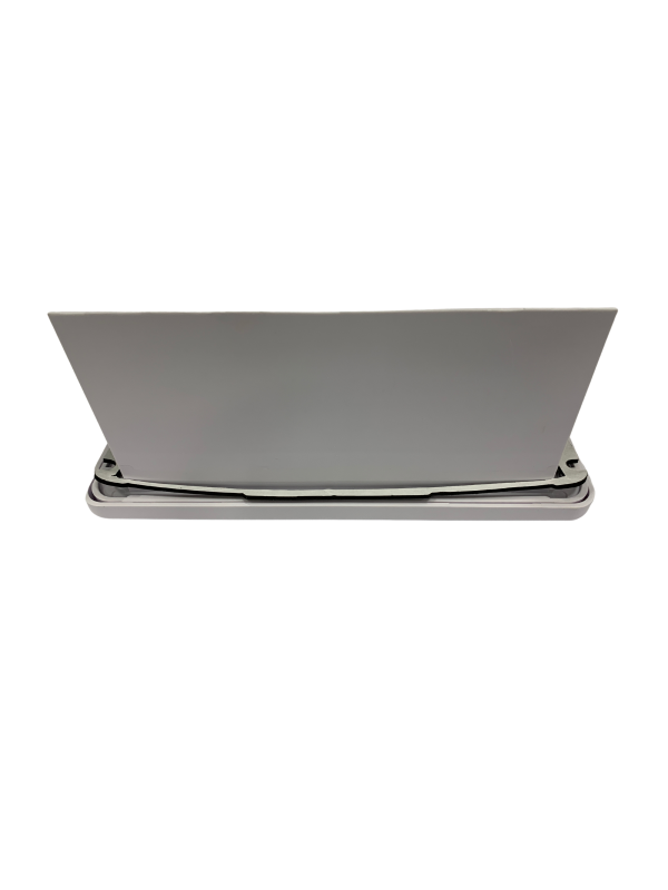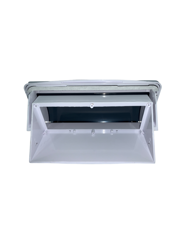 O produto apresenta porta dobrável com mola e proteção contra raios UV, além de ser resistente às adversidades marinhas.