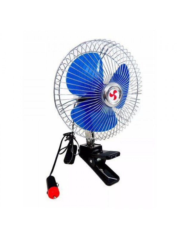 Ventilador Giratório 8" - 12V/15W, com 3 laminas na cor azul e base em clip