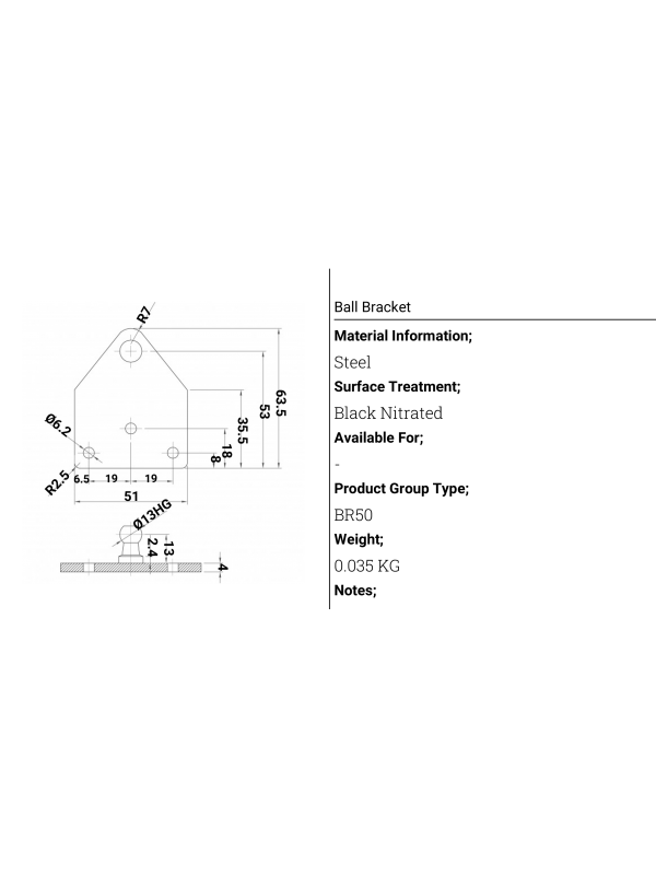 Suporte plano para amortecedor 51x63x4mm