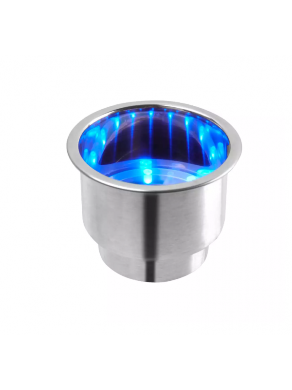 Porta copo em aço inox com dreno e led - Azul