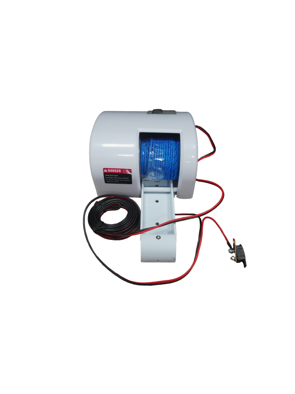 Guincho elétrico 12V 150W c/ controle remoto e rolete p/ âncoras até 13.6kg