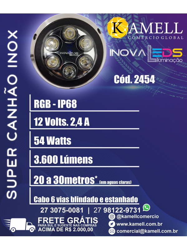 A Kamell, distribuidora de produtos náuticos, disponibiliza ao seu público o super canhão inovaleds em aço inox.