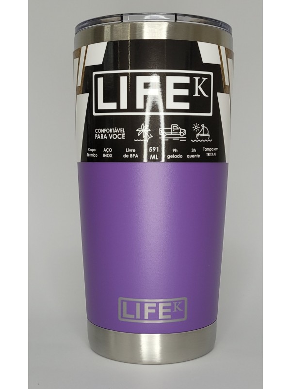 Copo LIFEK térmico EM AÇO INOX, na cor LILAS, 591ML, com tampa